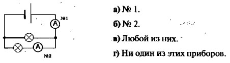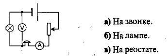 3. При прохождении по участку цепи заряда 100 Кл электрический ток произвел работу, равную 12 кДж. Каково напряжение на этом участке цепи? а) 120 В. б) 12 В. в) 1,2 В. г) 0,12 В. 4. На каком приборе измеряет напряжение вольтметр, включенный так, как показано на схеме?
