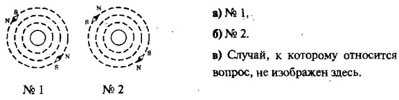 Электромагнитные явления Магнитное поле. Магнитные линии1. 0 чем свидетельствует опыт Эрстеда? а) О влиянии проводника с током на магнитную стрелку. б) О существовании вокруг проводника с током магнитного поля. в) Об отклонении магнитной стрелки около проводника с током. 2. Вокруг каких зарядов — неподвижных или движущихся — существует электрическое поле, вокруг каких — магнитное поле? а) Электрическое поле существует вокруг всех зарядов, магнитное — вокруг движущихся. б) Электрическое поле — вокруг неподвижных зарядов, магнитное — вокруг движущихся. в) И электрическое, и магнитное поля существуют вокруг любого заряда. 3. Что служит источником магнитного поля? а) Электрический заряд. б) Электрический ток. в) Проводник, который включается в цепь. 4. Магнитная линия магнитного поля — это... а) .. линия, по которой движутся железные опилки. б) ...линия, которая показывает действие магнитного поля на магнитные стрелочки. в) ...линия, вдоль которой устанавливаются в магнитном поле оси магнитных стрелочек. 5. Какова форма магнитных линий магнитного поля прямого проводника с током? а) Замкнутые кривые вокруг проводника. б) Концентрические окружности, охватывающие проводник. в) Радиальные линии, отходящие от проводника как от центра. 6. Какое направление принято за направление магнитной линии магнитного поля? а) Направление» которое указывает северный полюс магнитной стрелки. б) Направление, которое указывает южный полюс магнитной стрелки, в) Направление, в котором устанавливается ось магнитной стрелки. 7. Что нужно сделать, чтобы магнитная стрелка, расположенная на магнитной линии магнитного поля прямого проводника с током, повернулась на 180°? а) Отключить проводник от источника тока. б) Отклонить проводник от вертикального положения. в) Изменить направление электрического тока в проводнике на противоположное. 8. На рисунках показаны картины расположения и направления магнитных линий магнитного поля проводников с током. На каком из них картина магнитных линий соответствует полю перпендикулярного рисунку проводника, в котором электрический ток направлен к нам?