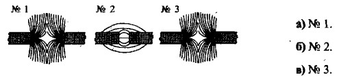 Электромагнитные явления Постоянные магниты и их магнитное поле. Магнитное поле Земли (окончание)8. На рисунке представлены картины магнитных полей между полюсами магнитов. На какой из них слева находится северный полюс?