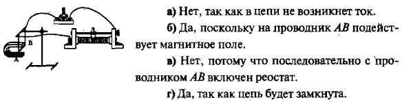 12. На какой проводник с током — прямой, в форме спирали, катушки, рамки — действует магнитное поле? а) На прямой. б) На катушку. в) На рамку. г) На все проводники с током. 13. Придет ли в движение проводник, изображенный на рисунке, если замкнуть ключ? Почему?