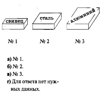 3. Удельная теплоемкость зависти от... а) ...массы тела. б) ...того, на сколько изменилась температура тела. в) ...рода вещества, из которого состоит тело. 4. Какое количество теплоты потребуется для повышения температуры на 1 °С кусков олова и меди массой по 1 кг? а) 230 Дж и 400 Дж. б) 23 Дж и 40 Дж. в) 230 Дж и 40 Дж. г) 23 Дж и 400 Дж. 5. Одинаково нагретые металлические бруски равной массы внесены в холодное помещение. Какой из них выделит наибольшее количество теплоты?