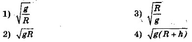 Глава 1. Законы взаимодействия и движения тел Искусственные спутники Земли (окончание)6. Как изменятся первая космическая скорость спутника, если радиус его орбиты увеличится в 9 раз? 1) Увеличится в 3 раза 2) Уменьшится в 3 раза 3) Увеличится в 9 раз 4) Уменьшится в 9 раз 7. Как изменится первая космическая скорость спутники, если он удалится от поверхности планеты на высоту, равную трем радиусам? 1) Увеличится в 2 раза 2) Уменьшится в 2 раза 3) Увеличится в 4 раза 4) Уменьшится в 4 раза 8. Спутник запускают на круговую околоземную орбиту» Высотой спутника над поверхностью Земли можно пренебречь. Массу спутника увеличили вдвое. Как изменилась его первая космическая скорость? 1) Увеличилась в 4 раза 2) Увеличилась в √2 раз 3) Не изменилась 4) Уменьшилась в 2 раза 9. Какая формула связывает первую космическую скорость спутника, летающего на небольшой высоте и ускорение свободного падения на поверхности планеты?