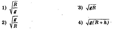 1) 1 2) 2 3) 3 4) 4 7. При увеличении в 3 раза расстояния между центрами шарообразных тел сила гравитационного притяжения 1) увеличивается в 3 раза 2) уменьшается в 3 раза 3) увеличивается 9 раз 4) уменьшается в 9 раз 8. Поезд движется со скоростью 72 км/ч по закруглению дороги. Определите радиус дуги, если центростремительное ускорение поезда равно 1м/с2. 1) 100 м 2) 400 м 3) 180 м 4) 5184 м 9. Какая формула связывает первую космическую скорость спутника, летающего на небольшой высоте, и ускорение свободного падения на поверхности планеты?