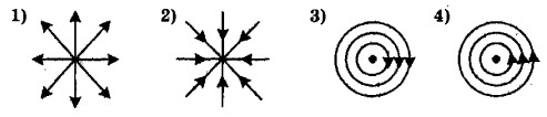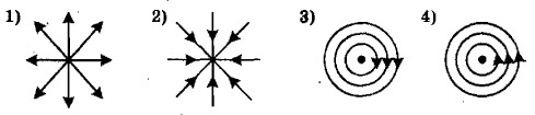 3. На каком рисунке правильно изображена картина линий магнитного поля длинного проводника с постоянным током, направленным перпендикулярно плоскости чертежа на нас?