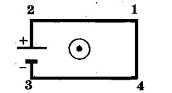 3. Электрическая цепь, состоящая из четырех прямолинейных горизонтальных проводников (1-2, 2-3, 3-4, 4—1) и источника постоянного тока, находится в однородном магнитном поле, линии которого направлены вертикально вверх (см. рисунок, вид сверху). Сила, действующая на проводник 4-1, направлена
