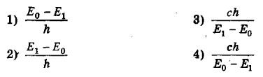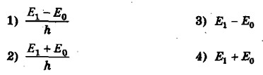 7. Частота фотона, поглощаемого атомом при переходе атома из основного состояния с энергией Е0 в возбужденное с энергией Е1 равна