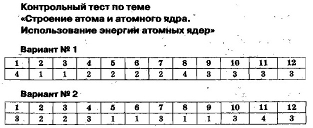 Контрольный тест: Строение атома к атомного ядра, использование энергии атомных ядер