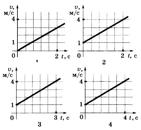 Контрольная работа № 1. Механическое движение. Вариант 1Окончание 7*. Зависимость скорости тела от времени описывается уравнением υ = 1 + 1,5t. Какой из графиков, представленных на рисунке, соответствует этому уравнению?