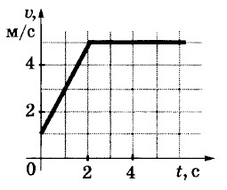 На графике показана зависимость скорости тела от времени. А. Чему равно ускорение тела, с которым оно двигалось первые две секунды? Б. Какой путь прошло тело за первые две секунды? В*. Чему равен путь, пройденный телом за 5 с? Г*. Чему равна средняя скорость тела за 5 с?