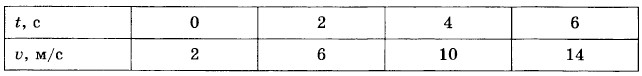 6*. Зависимость скорости тела и от времени t приведена в таблице. Масса тела 20 кг. Чему равен модуль равнодействующей приложенных к телу сил?