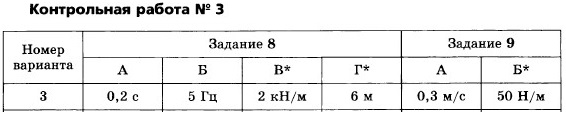 Контрольная работа № 3. Законы сохранения в механике. Механические колебания и волны. Вариант 3Окончание 7*. Летящий горизонтально со скоростью 200 м/с снаряд разрывается на два осколка, летящие в том же направлении. Скорость первого осколка 400 м/с, а скорость второго 100 м/с. Масса второго осколка равна 2 кг. Чему равна масса первого осколка? A. 0,5 кг. Б. 1 кг. B. 1,5 кг. Г. 2 кг. 8. Дайте краткие ответы на вопросы задачи. (В тетради обязательно должны быть черновые расчёты и чертежи.)