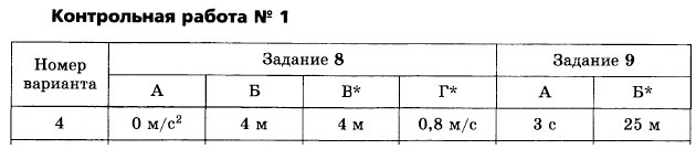 Контрольная работа № 1. Механическое движение. Вариант 4Окончание 7*. Зависимость координаты тела от времени описывается уравнением х = -40t + 4t2. В какой момент времени скорость тела равна нулю? A. 2 с.