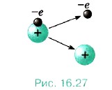 Ионизация газов. При обычных условиях газы почти полностью состоят из нейтральных атомов или молекул и, следовательно, являются диэлектриками. Вследствие нагревания или воздействия излучением часть атомов ионизуется (рис. 16.27). В газе могут образовываться и отрицательные ионы, которые появляются благодаря присоединению электронов к нейтральным атомам.