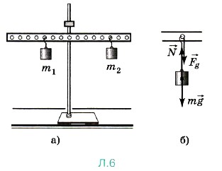 При подвешивании грузика на планку действует сила давления крючка (рис. Л.6, б). Эта сила давления по третьему закону Ньютона равна силе, действующей на крючок, которая, в свою очередь, равна силе тяжести, так как грузик находится в состоянии равновесия. Поэтому при расчётах можно использовать силу тяжести грузика. По данным таблицы 9 вычислите сумму моментов сил, действующих на планку и алгебраическую сумму сил, действующих на планку. Сделайте вывод.