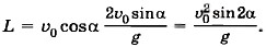 Дальность полёта L = (υ0cosα)tпол. (1.23) Время полёта можно определить из уравнения (1.21). При падении тела у = 0, отсюда Время подъёма Из формул (1.20) и (1.21) видно, что движение тела, брошенного под углом к горизонту, можно рассматривать как сумму двух независимых движений — равномерного движения вдоль оси ОХ и равноускоренного движения вдоль оси OY.