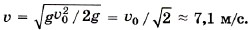 Задача 2. Маятник, представляющий собой маленький шарик, подвешенный на тонкой нити длиной 1 м, отклонили так, что нить стала составлять с вертикалью угол 60°. Затем шарик отпустили. Определите скорость шарика в тот момент, когда угол отклонения нити равен 30° и когда шарик проходит положение равновесия. Р е ш е н и е. На шарик во время движения действуют две силы — сила тяжести и сила натяжения (рис. 5.6). Изменение кинетической энергии шарика при перемещении из точки А в точку В равно: mυ22/2 - 0 = Ат + Ан. (1) Работа силы натяжения равна нулю, так как она всё время перпендикулярна перемещению. На основании закона о независимости движений движение шарика можно рассматривать как сумму двух движений: по оси ОХ и по оси OY. Работа силы тяжести при перемещении шарика вдоль оси ОХ равна нулю, так как сила тяжести перпендикулярна перемещению вдоль этой оси. Работа силы тяжести при перемещении вдоль оси OY равна Ат = mgΔy, где Δу = h1 - h2. Из треугольника АO2O1 получим O1O2 = lcosα0, тогда h1 = l - O1O2 = l(1 - cosα0), а из треугольника ВO2С получим O2С = lcosα, h2 = l - O2С = l(1 - cosα). Окончательно h1 - h2 = l(cosα - cosα0). Работа силы тяжести равна Ат = mgl(cosα - cosα0). Подставив найденное выражение для работы в уравнение (1), получим m22/2 = mgl(cosα - cosα0). Скорость в точке В: Перемещение шарика вдоль оси OY при движении из точки А в точку О равно h1. Тогда скорость шарика в точке О: Задача 3. Тело брошено вертикально вверх со скоростью υ0 = 10 м/с. Определите наибольшую высоту подъёма hmах, а также скорость тела на высоте, равной hmax/2. Силой сопротивления воздуха можно пренебречь. Р е ш е н и е. Изменение кинетической энергии тела при подъёме на максимальную высоту равно работе силы тяжести: 0 - mυ20/2 = -mghmax. Из этого уравнения сразу же получаем выражение для максимальной высоты подъёма: hmах = υ20/2g = 5 м. Скорость тела на некоторой высоте при падении равна его скорости на той же высоте при подъёме. Определим скорость тела при падении с максимальной высоты. Согласно теореме об изменении кинетической энергии mυ2/2 - 0 = mgh = mghmax/2. (Сила тяжести при спуске совершает положительную работу.) Тогда для скорости получаем формулу