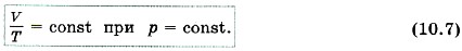 Согласно уравнению (10.4) в любом состоянии газа с неизменным давлением отношение объёма газа к его температуре остаётся постоянным: