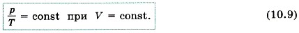 Из уравнения состояния (10.4) вытекает, что в любом состоянии газа с неизменным объёмом отношение давления газа к его температуре остаётся постоянным:
