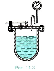 Так, в паровом котле при давлении, достигающем 1,6 • 106 Па, вода не кипит и при температуре 200 °С. В медицинских учреждениях в герметически закрытых сосудах — автоклавах (рис. 11.3) кипение воды также происходит при повышенном давлении. Поэтому температура кипения жидкости значительно выше 100 °С. Автоклавы применяют, например, для стерилизации хирургических инструментов, ускорения приготовления пищи (скороварка), консервации пищи, проведения химических реакций. И наоборот,
