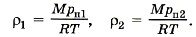 Плотность связана с давлением равенством ρ = Mp/RT, откуда