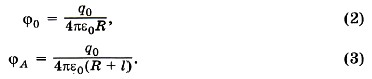 Выражая из формулы (2) заряд сферы q0 и подставляя полученное выражение в формулы (1) и (3), получаем для напряжённости Ел и потенциала Фл следующие выражения: