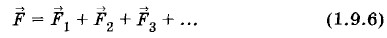 Вектор напряженности в любой точке электрического поля направлен вдоль прямой, соединяющей эту точку и заряд, — от заряда, если q > 0 (см. рис. 1.22, а), и к заряду, если q < 0 (см. рис. 1.22, б). Принцип суперпозиции полейЕсли на тело действует несколько сил, то по законам механики Ньютона результирующая сила равна геометрической сумме сил: