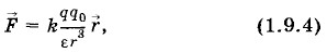 Найдем напряженность поля, создаваемого точечным зарядом q. Этот заряд действует на другой заряд q0 с силой, согласно закону Кулона равной: