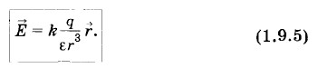 где Напряженность поля точечного заряда q на расстоянии r от него равна: