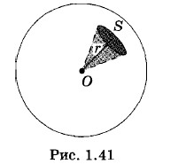 Глава 1. Электростатика Теорема ГауссаДля дальнейшего доказательства необходимо использовать понятие телесного угла. Рассмотрим сферу радиусом r. Представим себе внутри этой сферы конус, вершина которого находится в центре сферы (рис. 1.41). Этот конус вырежет на сфере некоторую часть поверхности площадью S. Область пространства, ограниченную поверхностью конуса, называют телесным углом. Мерой телесного угла