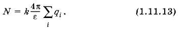 Если алгебраическая сумма зарядов внутри поверхности равна нулю, то и N = 0. Теорему Гаусса можно обобщить и для случая, когда заряд распределен в пространстве непрерывно. Это мы рассмотрим в следующем параграфе. Коэффициент k в формуле (1.11.13) равен единице в абсолютной системе единиц и