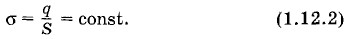 Эта плотность может непрерывно изменяться вдоль поверхности. Конечно, электрический заряд имеет дискретную (прерывную) структуру, так как сосредоточен в элементарных частицах. Но если на поверхности площадью AS содержится огромное число элементарных зарядов, то дискретную структуру заряда можно не принимать во внимание. Мы ведь пользуемся понятием плотности, считая, что масса непрерывно распределена в пространстве. А на самом деле все тела состоят из дискретных образований — атомов. В случае равномерного распределения заряда q по поверхности площадью S поверхностная плотность заряда постоянна и равна: