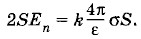Для применения теоремы Гаусса нужно выбрать замкнутую поверхность таким образом, чтобы можно было легко вычислить поток напряженности электрического поля через эту поверхность. В данном случае удобнее всего выбрать цилиндр, образующие которого параллельны линиям напряженности электрического поля, а основания параллельны плоскости (рис. 1.43). Тогда поток через боковую поверхность цилиндра будет равен нулю. Поэтому полный поток равен потоку через основания цилиндра А и В: N = 2 SEn, (1.12.3) где Еn — проекция вектора напряженности на нормаль к основанию цилиндра. Полный заряд внутри цилиндра равен σS. Согласно теореме Гаусса
