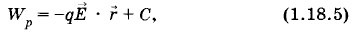 С другой стороны, согласно (1.17.1), А = -(Wp2 - Wp1). Сравнивая выражения (1.18.1) и (1.17.1), получим выражение для потенциальной энергии заряда в однородном поле: