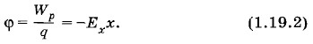 Напряженность поля Потенциал однородного поляЕсли в качестве нулевого уровня потенциальной энергии, а значит, и потенциала, принять потенциал положительно заряженной пластины В (см. рис. 1.79), то, согласно формулам (1.18.3) и (1.19.1), потенциал однородного поля равен: