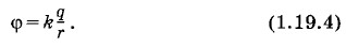 Отсюда в соответствии с определением потенциала (1.19.1) потенциал точечного заряда равен: