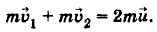 В проекциях на ось X имеем: 2mυ ain α = 2mu. Отсюда u = υ sin α. Теперь применим закон сохранения энергии: