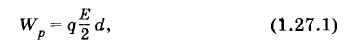 где q — заряд конденсатора, a d — расстояние между пластинами*. Формула (1.18.4) справедлива для энергии точечного заряда в однородном поле. Но заряд на пластине можно мысленно разделить на малые элементы Δq. Энергия каждого элемента равна: Так как Ed = U, где U разность потенциалов между обкладками конденсатора, то его энергия равна: