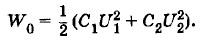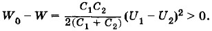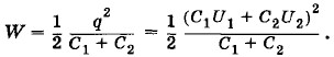 После соединения заряд батареи конденсаторов стал равен q = q1 + + q2, а энергия батареи