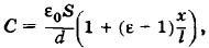 Энергия конденсаторов уменьшилась вследствие того, что при их соединении проводниками заряды перетекали с одного конденсатора на другой. В проводниках, соединяющих конденсаторы, выделялась при этом теплота. Количество выделенной теплоты не зависит от сопротивления соединительных проводов. При малом сопротивлении проводов в них будут протекать большие токи и наоборот. Если соединительные провода и обкладки не обладают сопротивлением (сверхпроводимость), то в системе возникнут электромагнитные колебания. Они в конце концов затухнут за счет излучения электромагнитных волн. 19. Когда диэлектрик втянут на расстояние х, конденсатор можно рассматривать как батарею, состоящую из двух параллельно соединенных конденсаторов (см. рис. 1.120). Ее емкость равна: