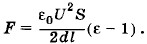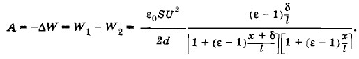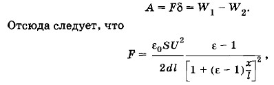 За счет этой работы увеличивается электростатическая энергия конденсатора и совершается работа по втягиванию диэлектрика. Если через F обозначить силу, с которой втягивается диэлектрик в конденсатор, то на основании закона сохранения энергии имеем: