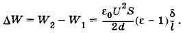 Если х увеличить на δ, то энергия конденсатора уменьшится. Она станет равной: