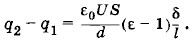 Заряд на обкладках конденсатора при перемещении диэлектрика на расстояние δ увеличится на