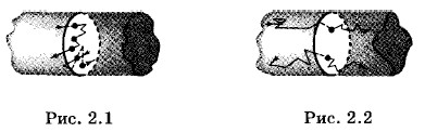 Упорядоченное движение заряженных частицВ предыдущей главе мы рассматривали разнообразные явления, связанные с электрически заряженными телами, находящимися в равновесии (в покое). Однако наибольший практический интерес имеет движение заряженных частиц. Упорядоченное (направленное) движение заряженных частиц называют электрическим током. Электрический ток существует лишь тогда, когда происходит перенос электрических зарядов с одного места в другое. Если заряженные частицы совершают беспорядочное тепловое движение, как, например, свободные электроны в куске металла, то переноса заряда не происходит (рис. 2.1). Электрический заряд перемещается через поперечное сечение проводника в определенную сторону лишь в том случае, если наряду с беспорядочным движением электроны участвуют в упорядоченном движении заряженных частиц (рис. 2.2). В этом случае говорят, что в проводнике устанавливается электрический ток.