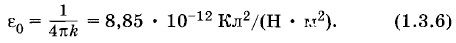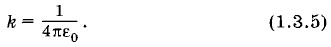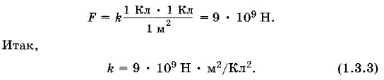 Учитывая, что 1 дин = 10-5 Н, получим F = 9 • 109 Н. Для того чтобы закон Кулона (1.2.3) при записи его в СИ приводил к тому же значению силы, необходимо взять к равным 9 • 109 Н • м2/Кл2. Тогда