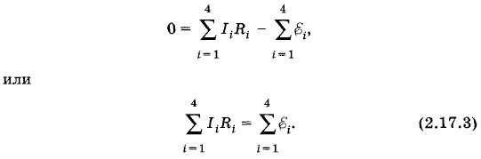 Это и есть второе правило Кирхгофа: алгебраическая сумма падений напряжения в ветвях замкнутого контура равна алгебраической сумме ЭДС, действующих в этом контуре. В более общем виде второе правило Кирхгофа можно записать так: