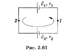 Знак минус указывает на то, что потенциал точки 1 меньше потенциала точки 2. Тот же результат можно получить, применяя закон Ома к нижнему участку цепи:
