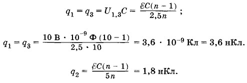 Заряды на обкладках конденсаторов С1,С2 и СЗ найдем так: