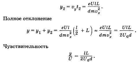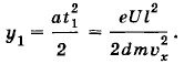 При движении между пластинами в направлении оси Y электрон находится под действием силы Расстояние l вдоль оси X электрон проходит за время