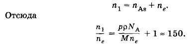Задача 5Концентрация электронов проводимости в германии при комнатной температуре nе = 3 • 1019 м-3. Какую часть это число составляет от общего числа атомов? Плотность германия ρ = 5400 кг/м3, молярная масса германия М = 0,073 кг/моль. Во сколько раз увеличится концентрация электронов проводимости при введении в германий примеси мышьяка, составляющей по массе р = 10-5% ? Молярные массы мышьяка и германия считать одинаковыми. Решение. Число атомов германия определяется по формуле