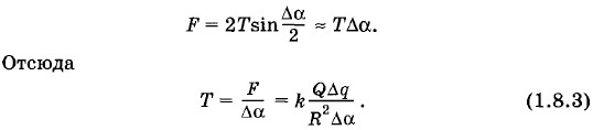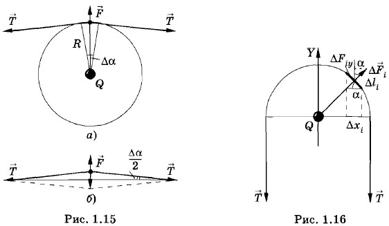 Геометрическая сумма элементарных сил, действующих на полукольцо, уравновешивается возникающими силами натяжения кольца (см. рис. 1.16):